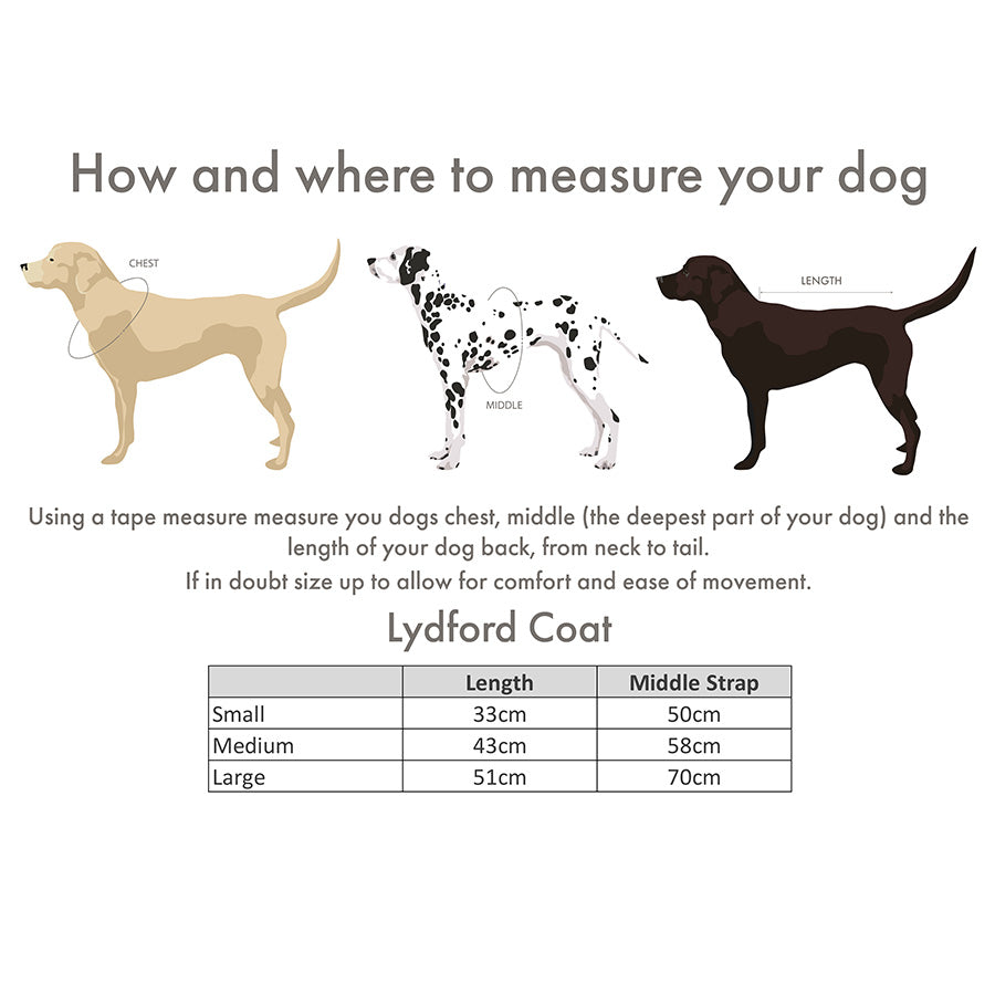 To meausure your dog, take a tape measure from the base of the neck along the spine to the base of their tail. It is important to consider both weight and measurements to ensure you are selecting an appropriate size.
