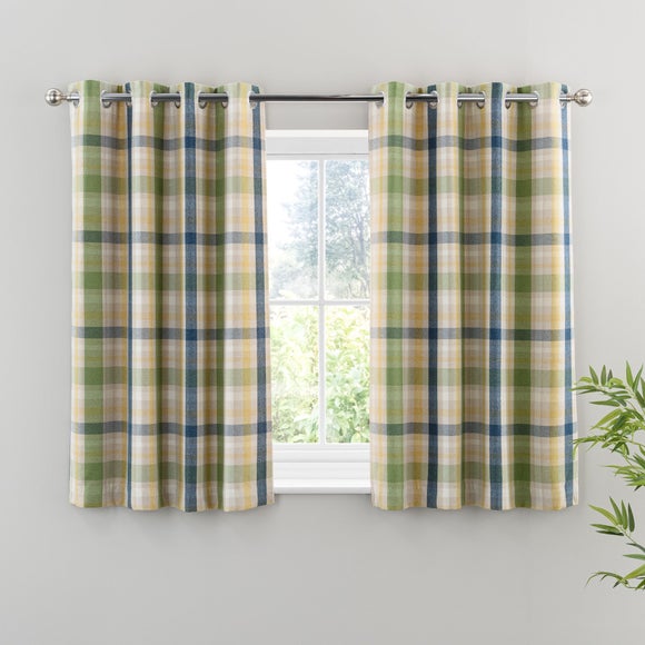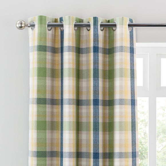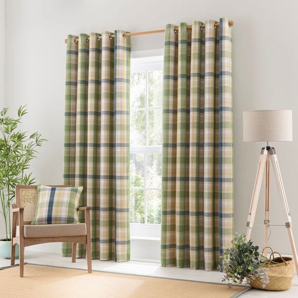 A modern twist on a much loved classic, this curtain set features an elegant large-scale woven twill check design in contemporary trending colours. Sporting a brushed finish, these curtain panels are beautifully soft, inviting you to get cosy in your home. This pair of curtains is crafted from a large-scale woven twill check design in contemporary colours which bring a modern feel to a design classic. A brushed finish gives these curtain panels a beautifully soft feel that will make any room feel warm and welcoming. The curtains are completed with a lining made entirely of recycled polyester and an convenient eyelet header. They come in various widths and drops to suit your preferences. For a cohesive room style, pair them with corresponding cushions featuring the same design.