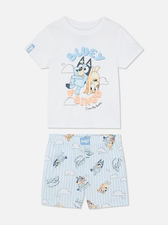 Dress them in Bluey with this cute T-shirt and shorts pyjama set covered in Bluey prints