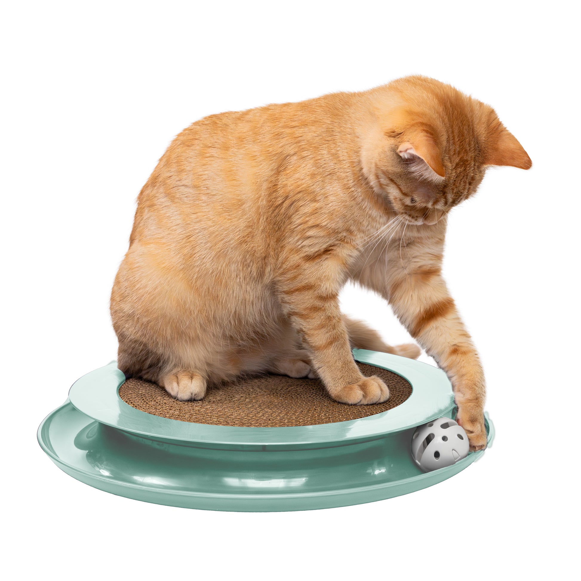 - Cat scratcher for double feline fun and distraction - Built-in ball track is great for endless play