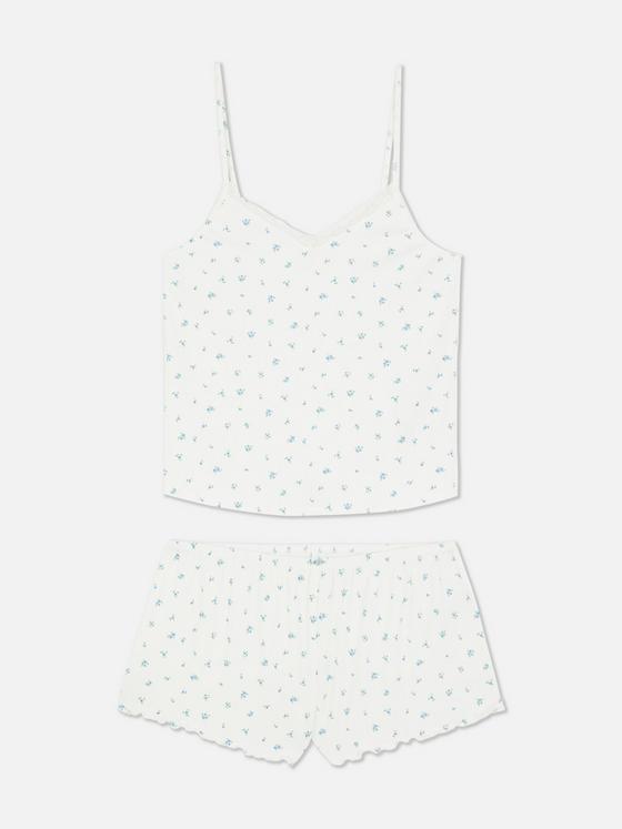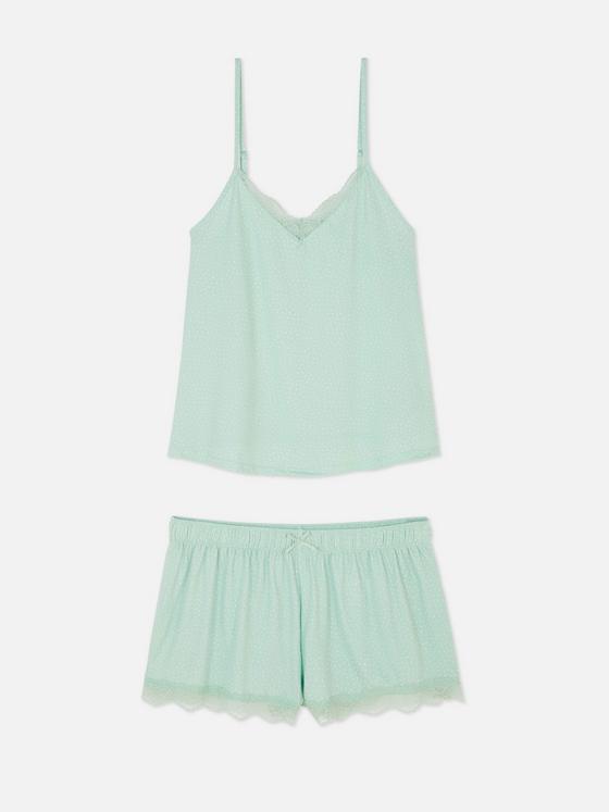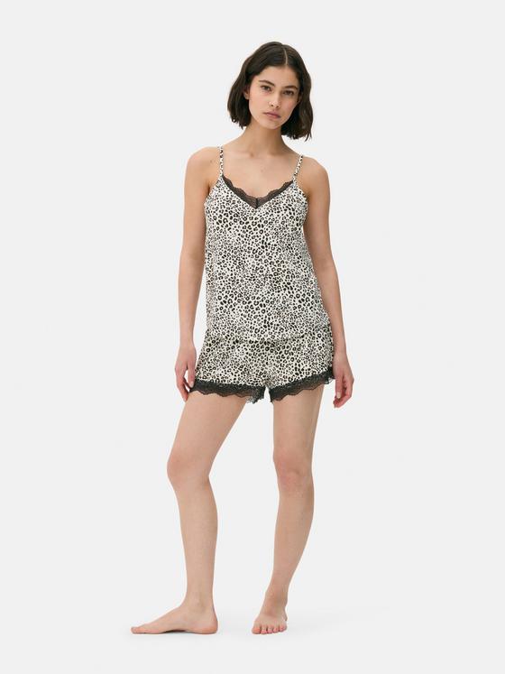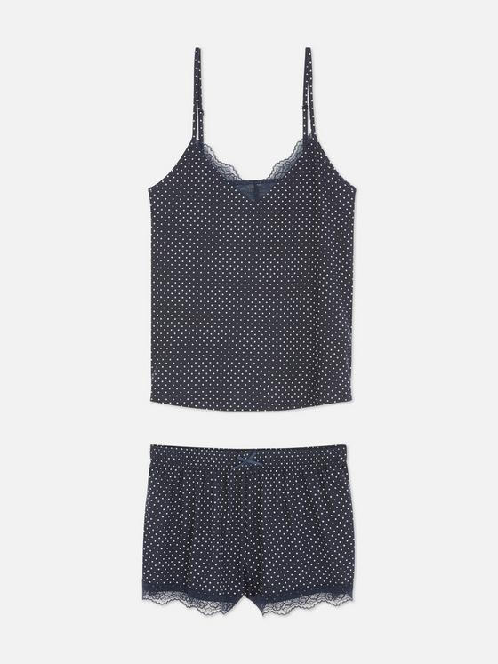 Shorty pyjamas featuring a lace-trim cami top and elasticated shorts