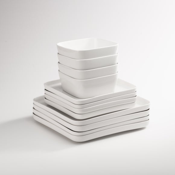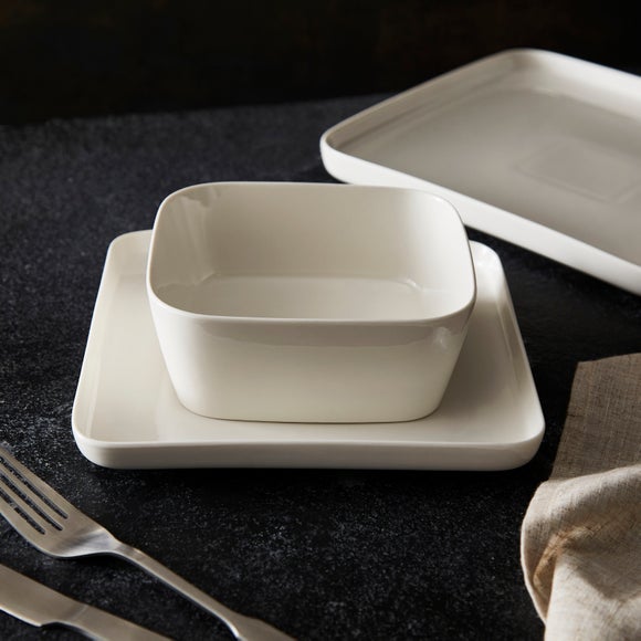 Cover all you dining needs with our modern Larson square 12pc dinner set. Beautifully crafted from our fine quality New Bone China. With its soft square design, this collection brings a modern sleek feel to you dining table. Enjoy the cohesive collection each dinnertime. Whether it’s a causal meal or a special occasion, this set adds a touch of sophistication to every gathering. Let the Larson square 12pc set harmoniously blend durability and design and elevate your dining space with this chic dinnerware.