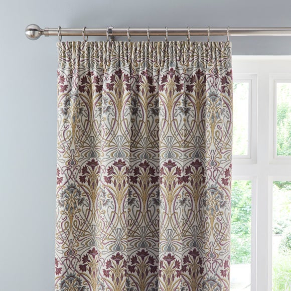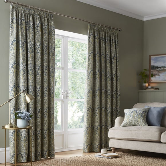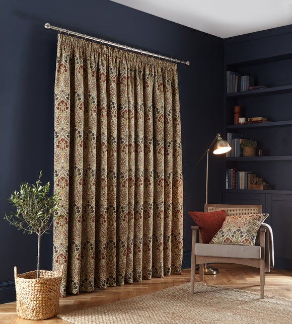 Finished with a traditional pencil pleat header, this pair of Lucetta curtains is complete with a contrasting coloured pattern and are fully lined for a weightier finish. Matching cushion and tiebacks are also available.