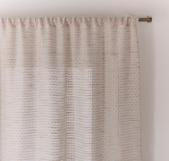 Meet the Luxe Open Mesh Slot Top Voile Panel, which is crafted from woven, sheer material and beautifully combines natural and white tones. With its smart and easy-to-hang slot top header, this piece adds a stylish and classy feel to any room.