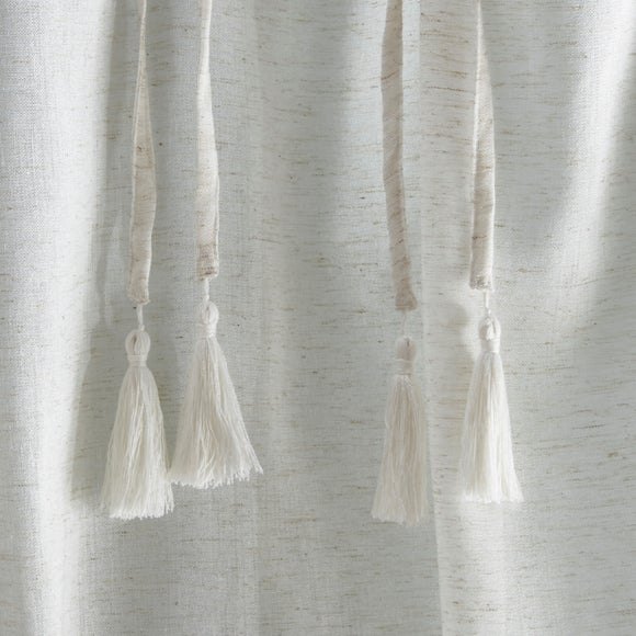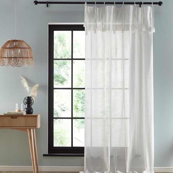 This woven voile panel features linen detail fabric with tassels hanging near the header. Crafted from a polyester and linen mix, this versatile tie top voile panel can not only be used traditionally in your windows, but also to create a separate room with room panels. This helps you improve privacy and make the most of your space. Various sizes are available, find the one best suited to your home.