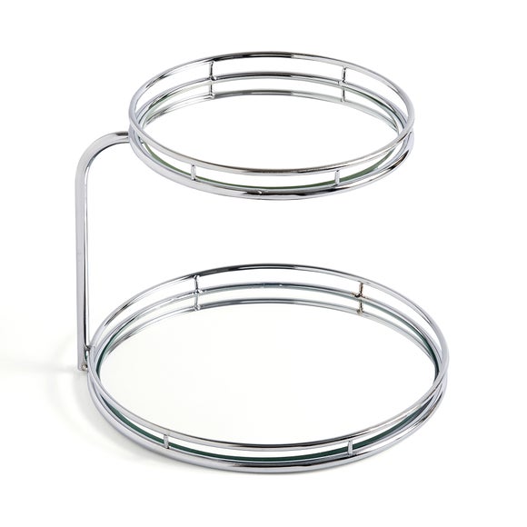 Display bathroom items in unparalleled style with this luxurious double tiered storage tray. Featuring a mirrored base, this piece is perfect for adding a striking statement in any home.