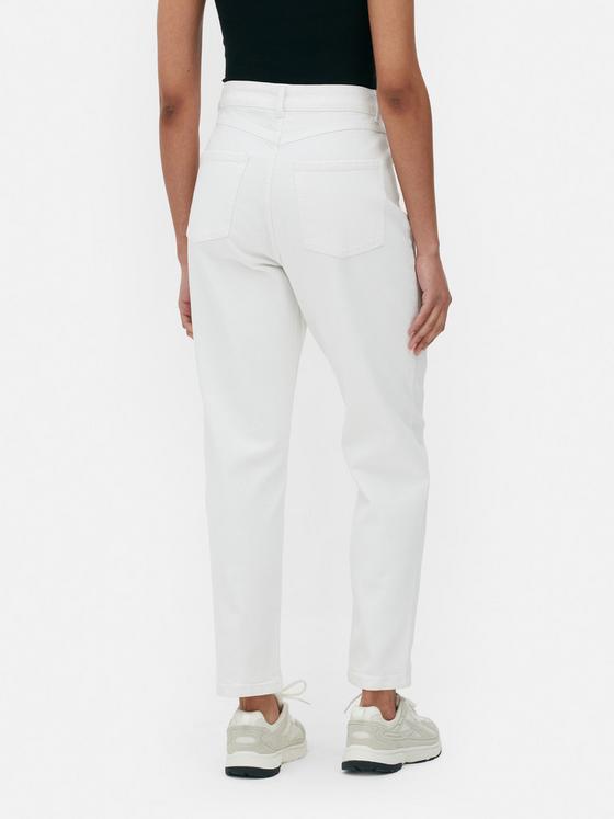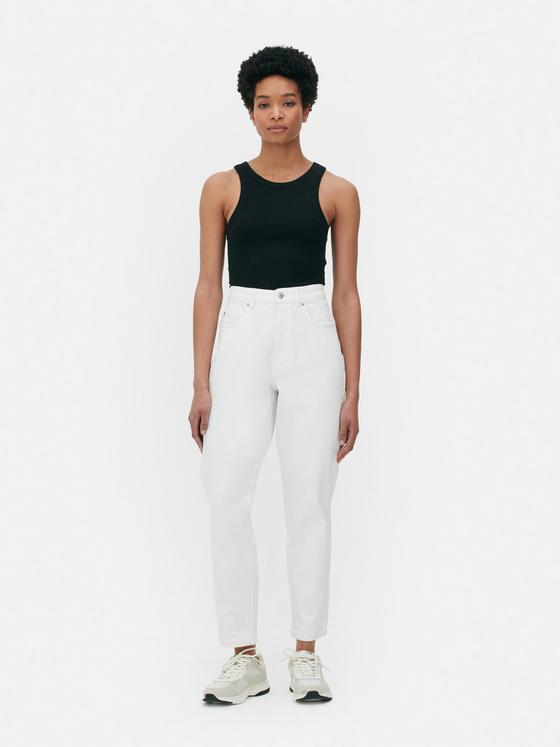 Keep things casual in these classic Mom jeans. Made from cotton denim that’s enriched with just a hint of stretch for comfortable wear, these jeans feature high-rise waist with belt loops and a concealed front fastening. They follow a signature five-pocket design and the silhouette tapers slightly toward the ankle. Tuck in a relaxed tee and slip into low-top trainers for a go-to look.