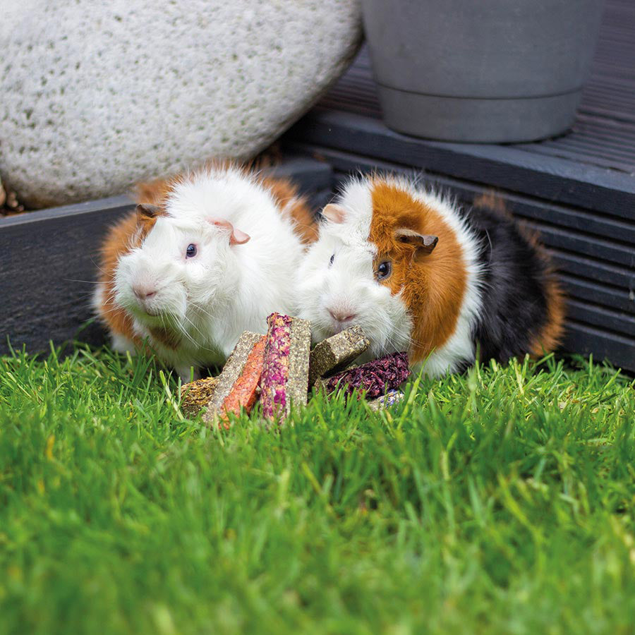 Our vegetable, herb and oat-based mini bars are a perfect size for a daily treat. Pamper your best friend with a different luxury topping from a choice of cornflower, hibiscus, rose, marigold, apple, carrot and fenugreek with mint. Made with love and 100% natural ingredients. For all small animals. 7-Herb version also available.