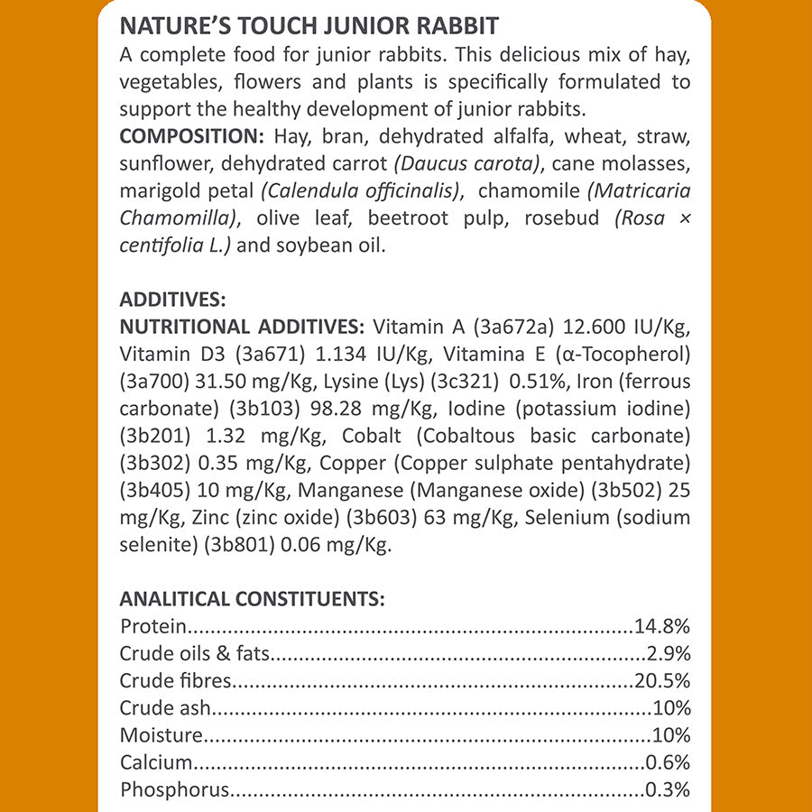 It is well understood that baby rabbits require a distinct diet from adults, with the ingredients playing a pivotal role in ensuring healthy growth. This specialized diet furnishes young rabbits with augmented fiber and protein to support proper growth rates, promote efficient digestion, and crucially, facilitate the appropriate wear and tear of their teeth. Junior Rabbit incorporates a substantial array of plants and hay, emitting an enticing aroma that delights the senses while ensuring a highly palatable diet for all rabbits.