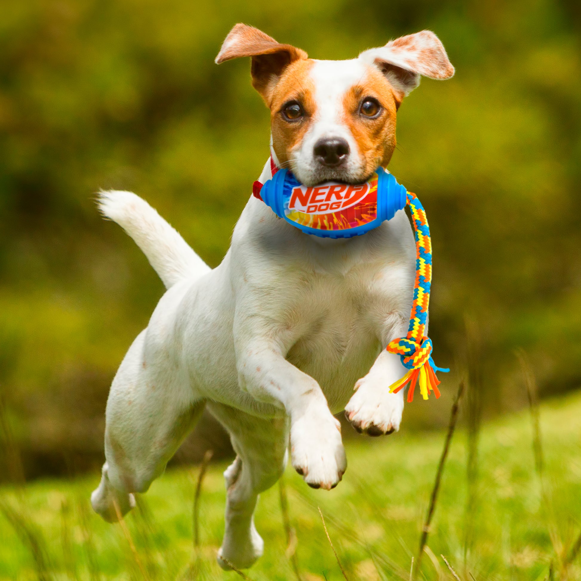 Nerf Colour Blast Squeak Football with T Shirt Rope TPR Dog Toy