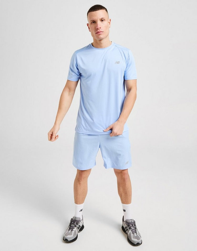 Step up your training staples with these men's Essential Running Shorts from New Balance. Exclusive to JD, these regular-fit shorts land in a Blue colourway across the lightweight woven recycled polyester fabric. Packed with sweat-wicking NB DRY tech for cool comfort, they feature side pockets for your essentials and a drawcord tie to the elastic waistband to secure them in place. Finished off with the signature NB badge to the left leg. Machine washable. | Our model is 6'1" and wears a size M.