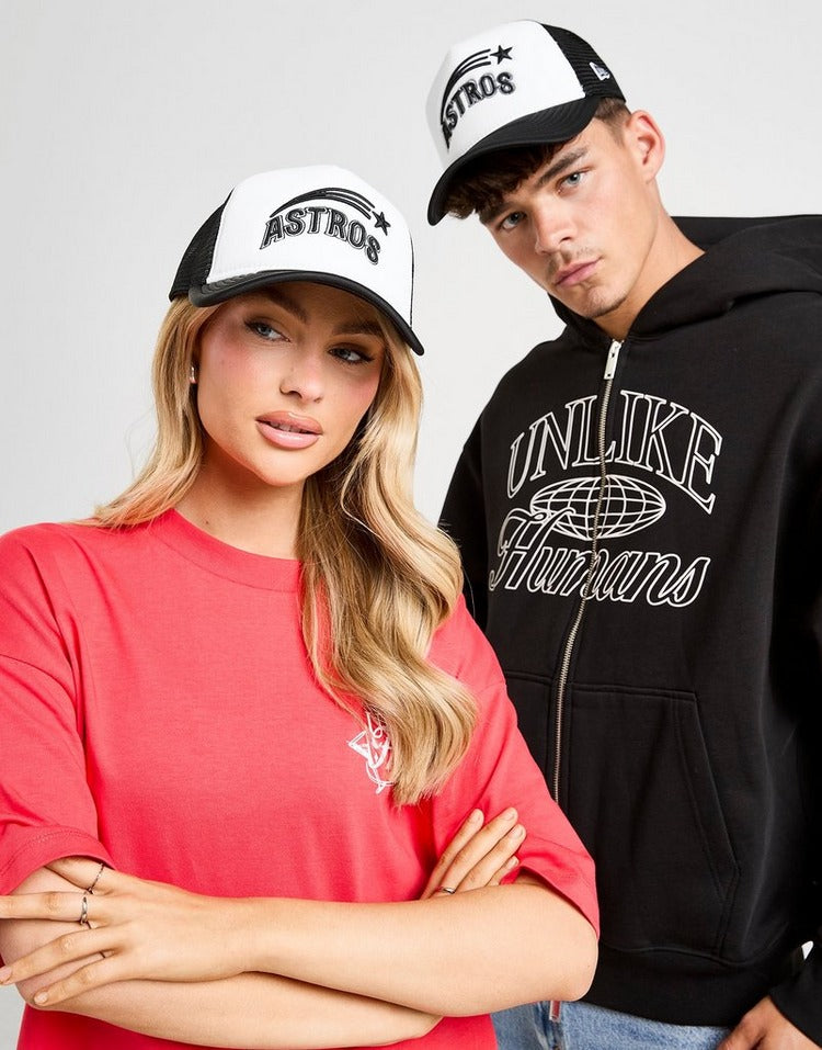 Get behind your team with this MLB Houston Astros Trucker Cap from New Era. In a White and Black colourway, this JD-exclusive cap is cut from smooth cotton fabric with breathable mesh for cool comfort. It features a curved brim for coverage, with an adjustable strap for a custom fit. Finished up with Astros branding to the front. Hand wash.