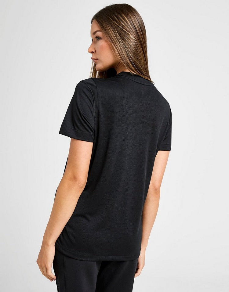Rep your nation in this women's England WEC 2025 Away Shirt from Nike. In a Black colourway with Light Photo Blue accents, this shirt is made from lightweight polyester for cool comfort. It features a crew neckline and short sleeves for a classic cut, and is equipped with Dri-FIT sweat-wicking tech to keep you feelin dry. With colourful trims on the sides, it's signed off with an embroidered Swoosh logo and England crest to the chest. Machine washable.