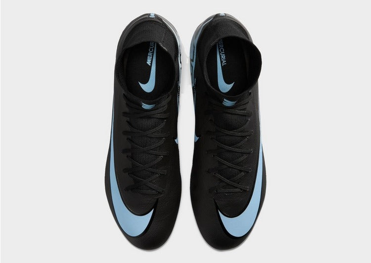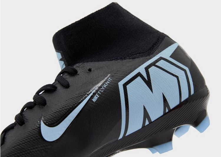 Serious speed. Serious skills. These men's Mercurial Superfly 10 Pro FG football boots from Nike are built to push the pace. In a Black and Ice Blue colourway, these boots have a full, ultra-light Flyknit upper with a tacky skin finish that's geared for goals and maximum control. With studs in a wave-like traction pattern and an Air Zoom unit underfoot promising quick cuts and comfort all game, these boots are finished up with a stretchy collar and signature Nike branding throughout.