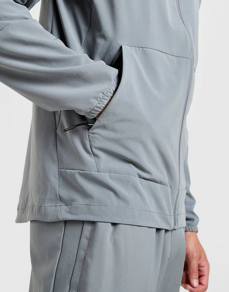 Level up your layers with this versatile men's Unlimited Woven Jacket by Nike. Landing in a Smoke Grey colourway, this jacket is made with a breathable and stretchy poly fabric that has a durable water-repellent finish for added protection. It features full zip fastening with an adjustable hood so you can personalise your coverage, elastic cuffs to hold the shape, and front pockets for storage. This packable jacket is finished up with a reflective Swoosh to the chest. Machine washable. | Our model is 5'11.5" with a 38" chest and wears a size medium.