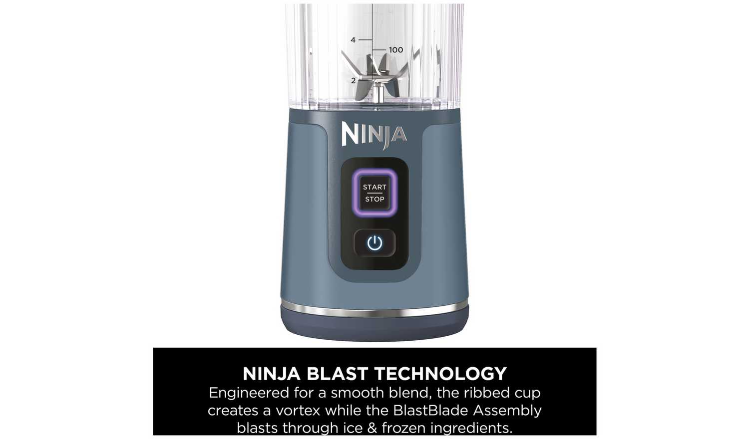Blast through frozen fruit and ice with Ninja Blast Technology, engineered for a smooth blend. The ribbed cup creates a powerful vortex while the durable, stainless steel BlastBlade Assembly powers through frozen ingredients.
