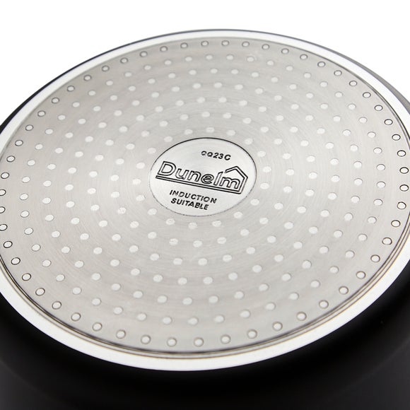 This set is compatible with all hobs and oven safe up to 180°C - elevate your cooking experience with the Dunelm Aluminium 5 Piece Pan Set today!