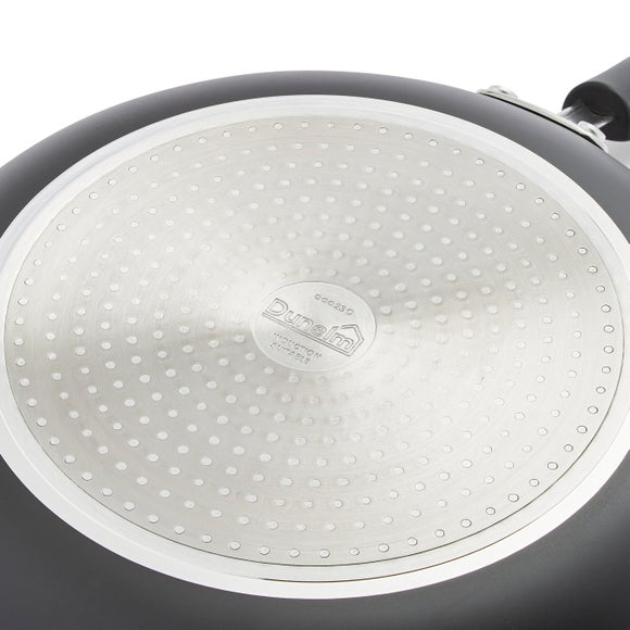 Meet the Dunelm Aluminium Frying Pan, your go-to companion for frying perfection. Crafted with high-quality materials, this sleek frying pan guarantees durability and performance. Its non-stick interior and exterior ensure effortless cleaning, whilst the easy-grip, soft-touch handle offers comfort and control when cooking. With compatibility for all hobs and oven-safe up to 180°C, this frying pan is a versatile addition to your kitchen that makes every meal a delight.