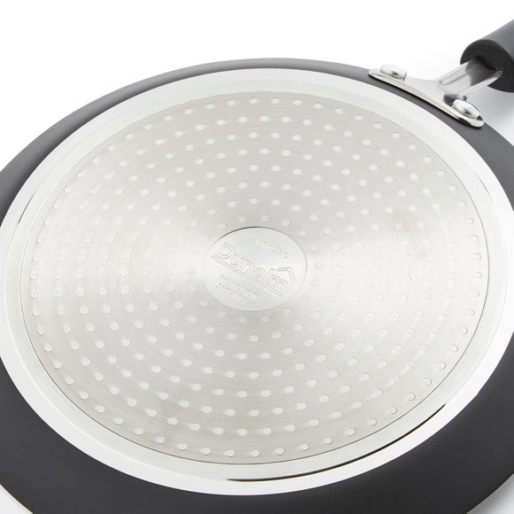 Indulge in fluffy and delicious pancakes with the Dunelm Aluminium Pancake Pan. Specially crafted for the perfect pancake experience, this high-quality pan boasts a non-stick interior and exterior, ensuring easy flipping and cleaning. The easy-grip, soft-touch handle adds comfort and control, whilst its compatibility with all hobs and oven-safe design up to 180°C makes it a versatile and reliable choice for pancake enthusiasts.