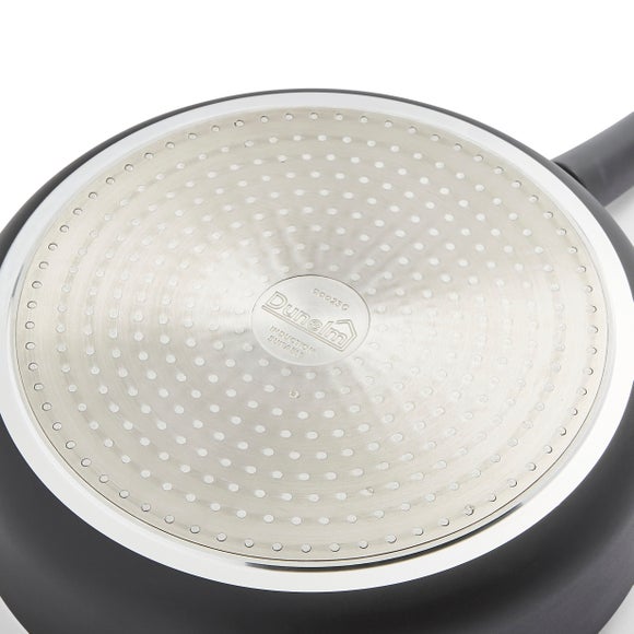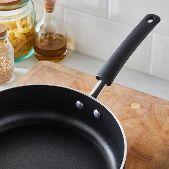 Meet the Dunelm Aluminium Saute Pan, a high-quality addition to your kitchen. Its see-through glass lid allows you to lock in flavours whilst keeping a close eye on your cooking and the lid knob acts as a handy utensil rest, ensuring mess-free cooking. With a non-stick interior and exterior, cleaning becomes a breeze. The easy-grip, soft-touch handle guarantees comfort whilst preparing your favourite dishes. Compatible with all hobs and oven-safe up to 180°C, this saute pan is a versatile and reliable kitchen essential.