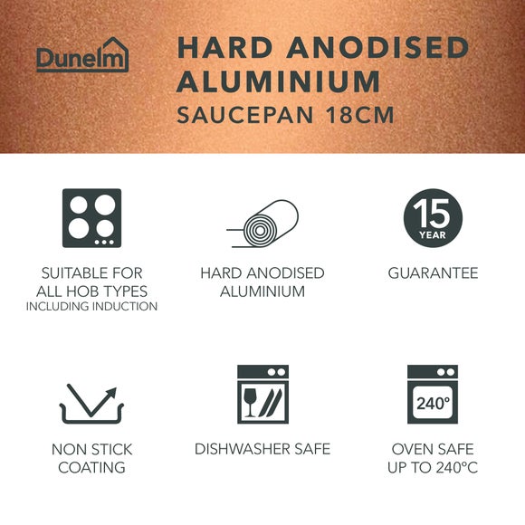 Non-Stick Hard Anodised Aluminium Saucepan, 18cm
