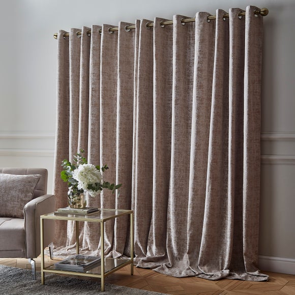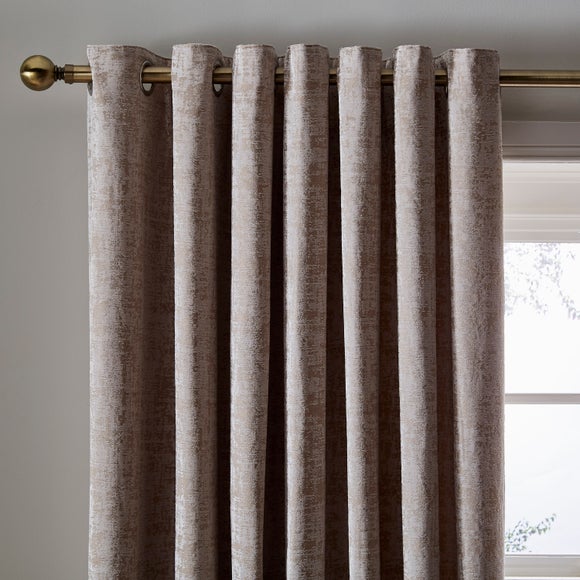 Our Opulent Chenille curtains have been crafted using fine, natural coloured yarns mixed with metallic's. These curtains are great for adding a luxurious look to your home interior. Made from 100% polyester (30% recycled) material, the face fabric has been lined with a recycled polyester lining. The lining will help preserve the design and front fabric from fading, making these curtains long-lasting. Complete with a durable brushed steel eyelet header, these curtains are designed for use with a curtain pole. Coordinate the curtains with the matching cushion for a stylish room look.