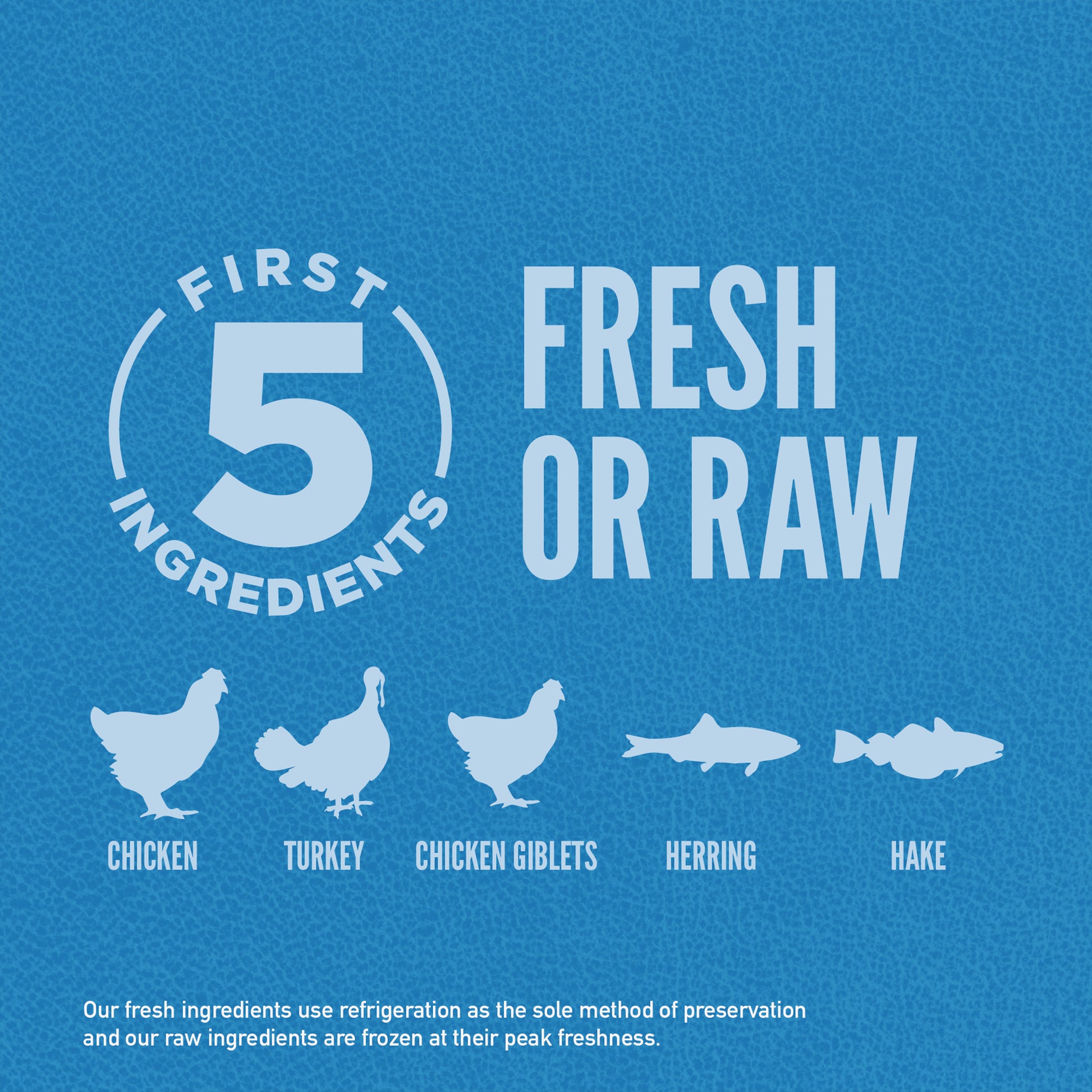 - FRESH & RAW INGREDIENTS* - The first 5 ingredients in ORIJEN are fresh or raw* poultry and fish ingredients.