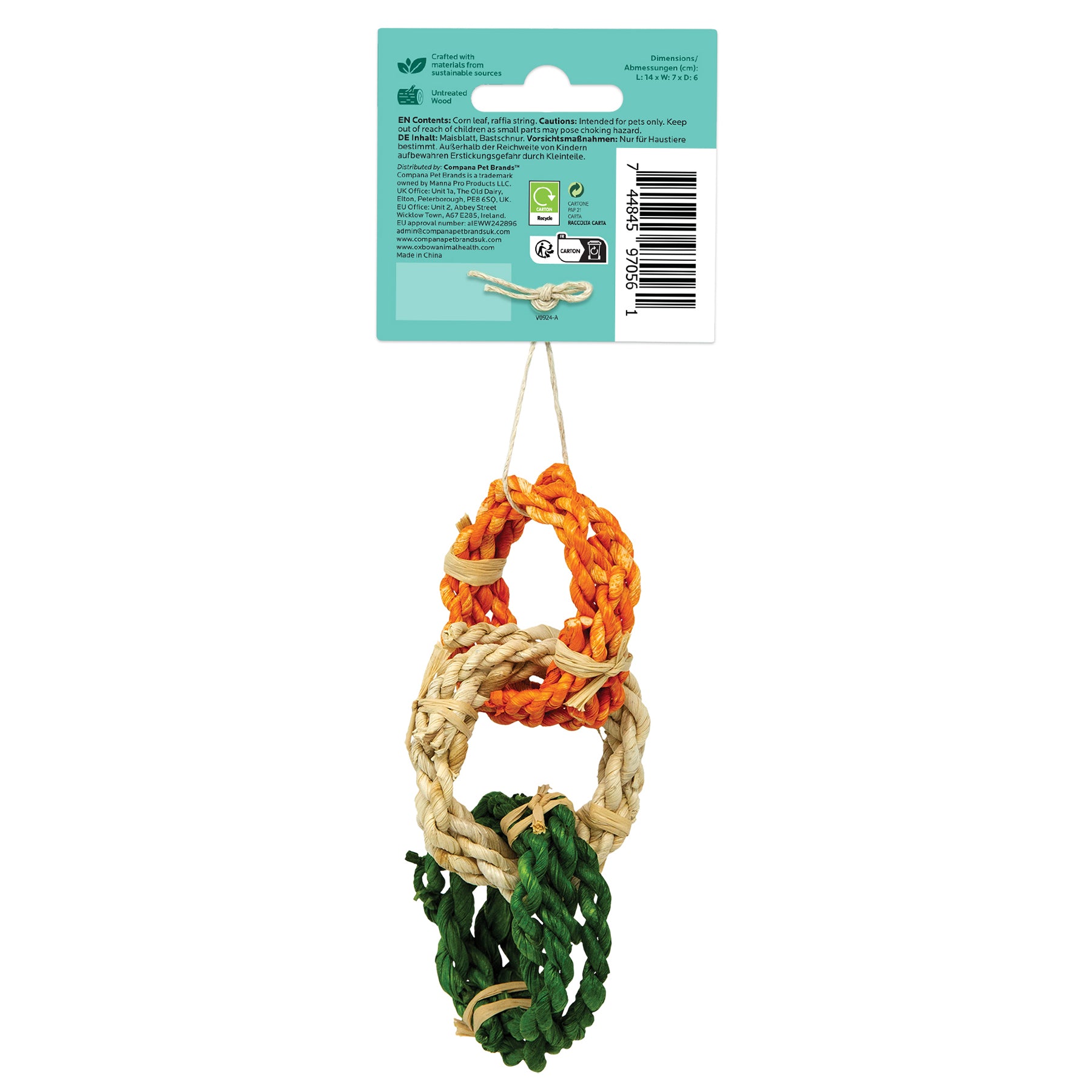 - Made with a variety of premium materials - Oxbow use cardboard, untreated wood, sisal, leaf and husk and food-safe vegetable dyes for this toy