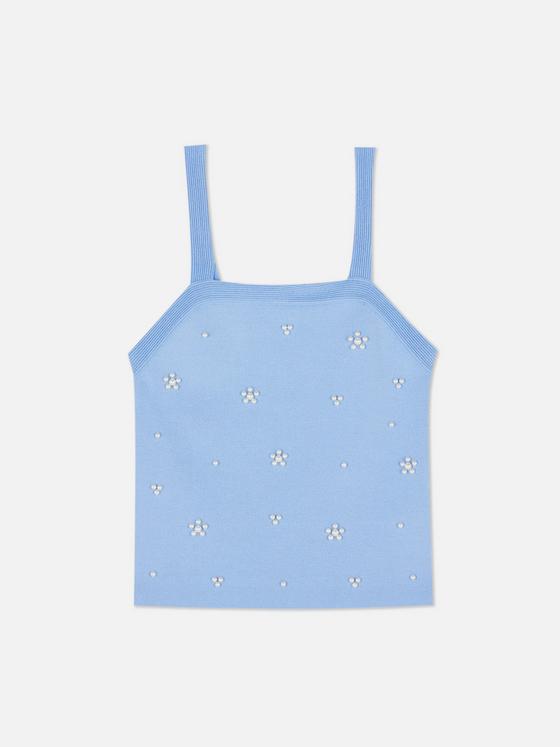 A knitted vest delicately detailed with pearl embellishments