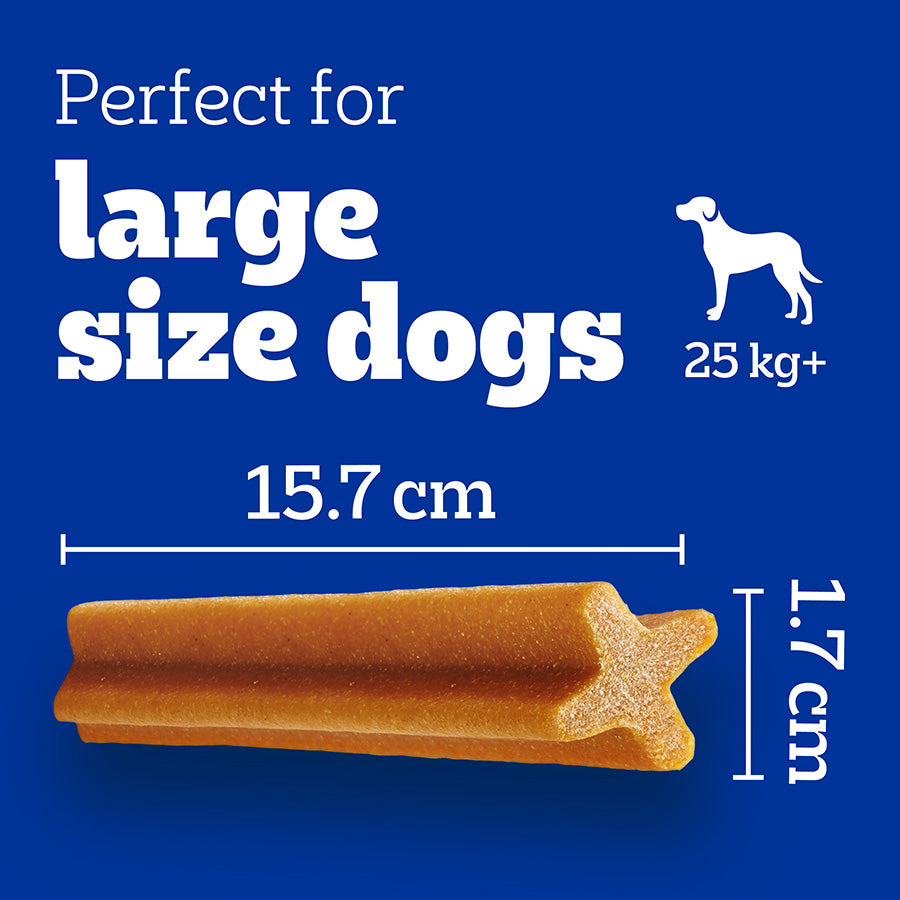 Pedigree Dentastix Daily Oral Care dog chews are recommended by vets. The uniquely X shaped dog dental treats that are scientifically proven to reduce tartar build up by up to 80% when fed daily. The Pedigree Dentastix Daily dog chews have been designed to be chewed for long enough to be effective. These Pedigree treats for dogs have a gently abrasive texture combined with active ingredients that work with your dog's saliva, help to reduce the build-up of plaque and tartar. Dentastix dental treats for dogs are low in fat, with no added sugar and free from artificial colours and flavours; a healthy dog treat with benefits
