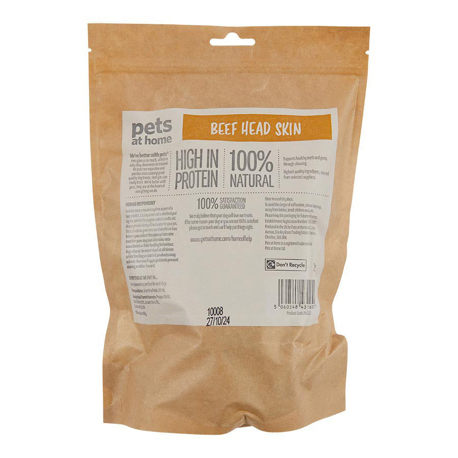 Pets at Home Adult Dog Treats Beef Head Skin 250g