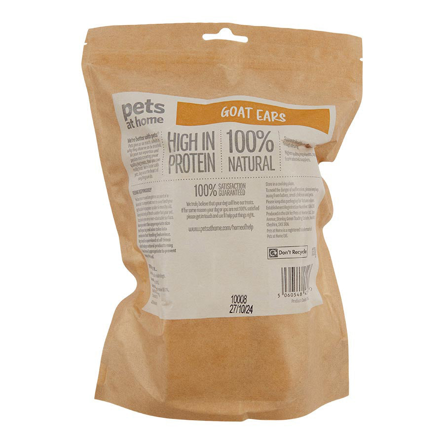 Occupy while you treat your dog with this long-lasting Pets at Home Goat Ears Dog Treats. Made from 100% natural ingredients this treat supports healthy teeth and gums through chewing, it is high in protein and at 482 calories per 100g you know exactly what your dog is eating.
