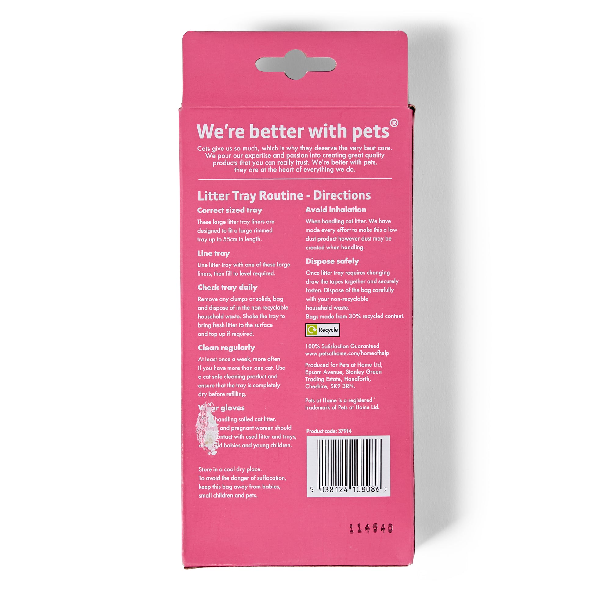 If you're in need of an easy and hygienic way to dispose of used cat litter, then look no further. Pets at Home make cleaning up your cat's litter tray even easier with these Large Cat Litter Liners. The liners are completely leak resistant and helps keep your litter tray hygienic and clean to dipose of. Simply add the liner into a clean cat litter tray, fill with cat litter, and allow your furry friend to use. Each pack contains 8 liners.