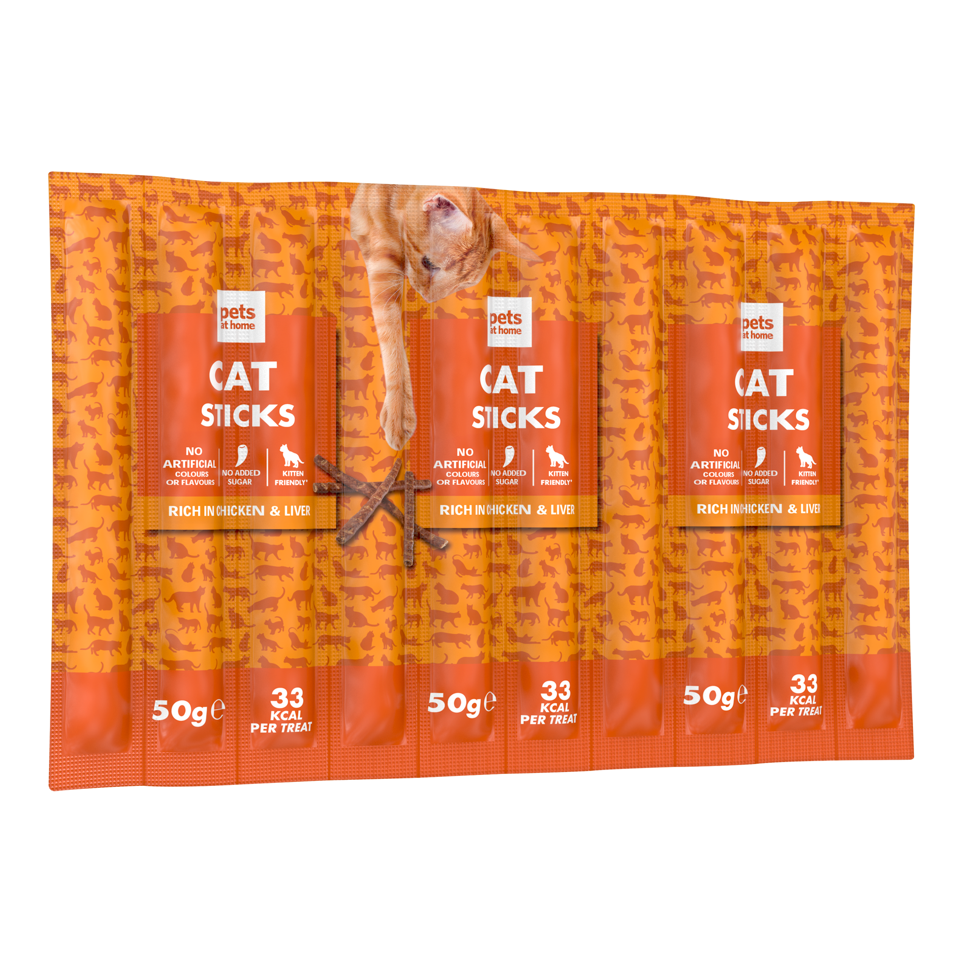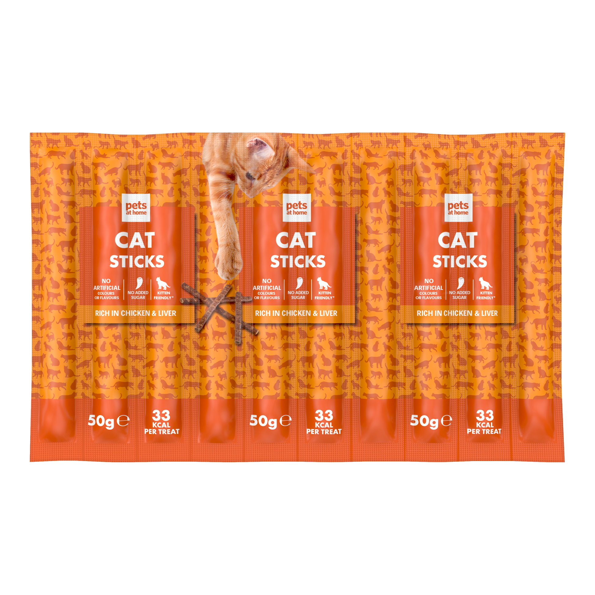 The Pets at Home Cat Treat Sticks are the perfect way to treat or reward your cat at any time. Simply break up and portion each deliciously rich chicken and liver flavoured stick into individual meaty treats. Each portion contains 33 calories, and with no artificial colours, flavours and no added sugar, you know exactly what your cat is eating.