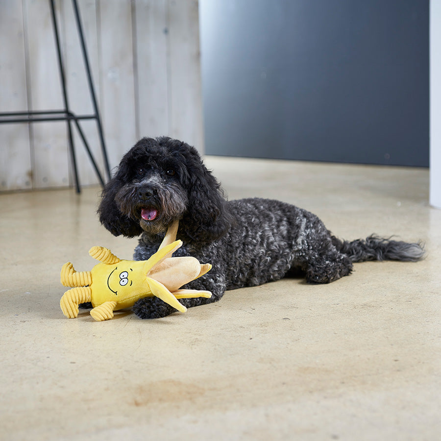Your dog won't be able to hide their excitement when they get their teeth around this soft Cord Banana toy, with its cute design and added squeak and crackle textures, it is sure to add extra fun to your dogs playtime as well as being a soft toy to snuggle up with when settling down for a snooze. Toys that squeak or make noise offer your dog a rewarding playtime experience, and this Cord Banana toy offers your dog the ultimate playtime reward when they hear the satisfying squeak and crackle everytime they play.