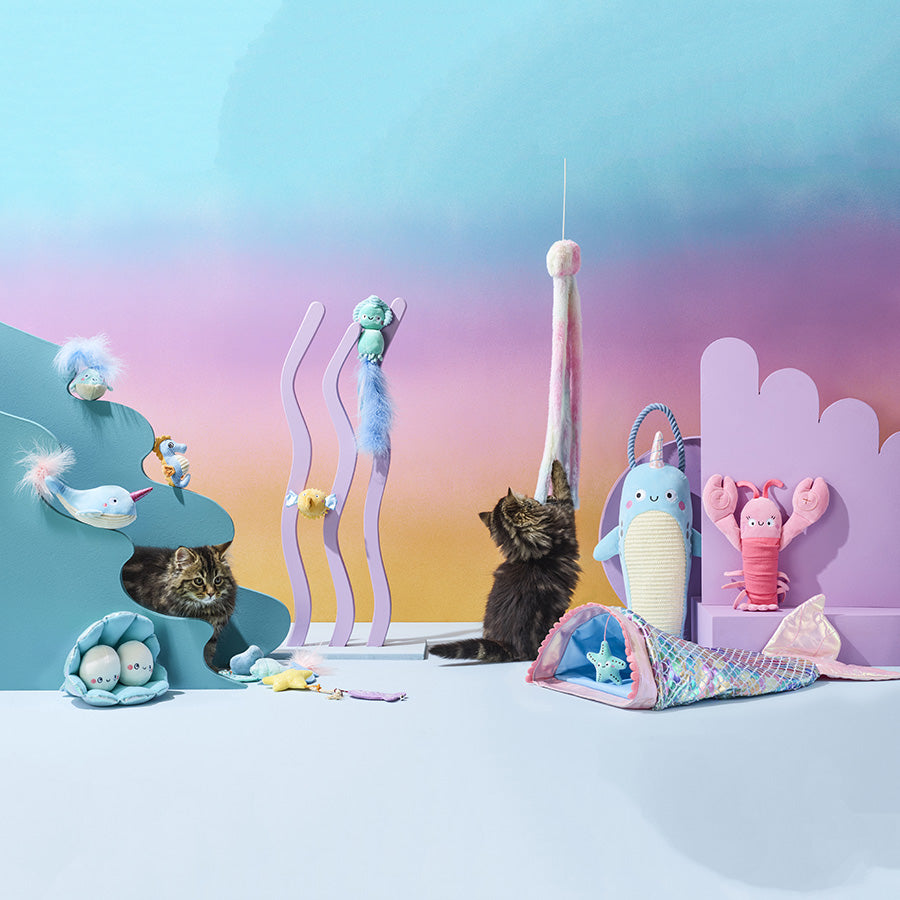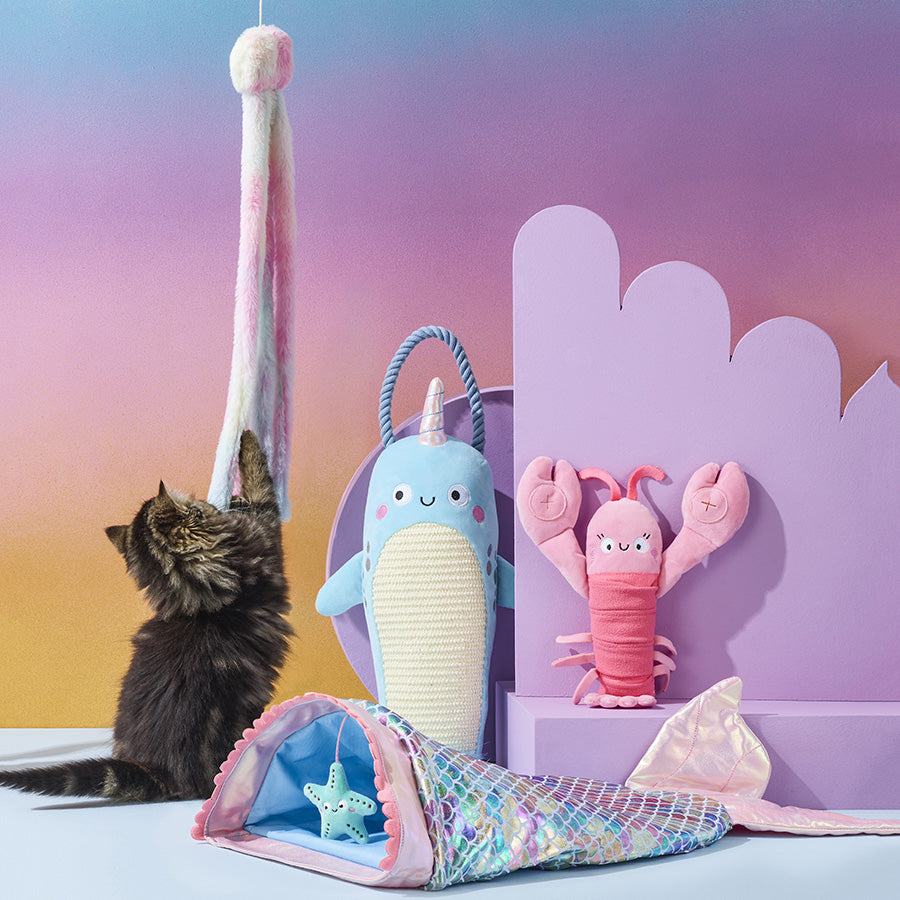 Hang him up or kick him about, this narwhal gives your kitten the best of both worlds. With crinkle and bell for added stimulation during playtime, this unicorn of the sea also features a scratchable belly, teaching your kitten to scratch and play and stimulating them through touch and feel.