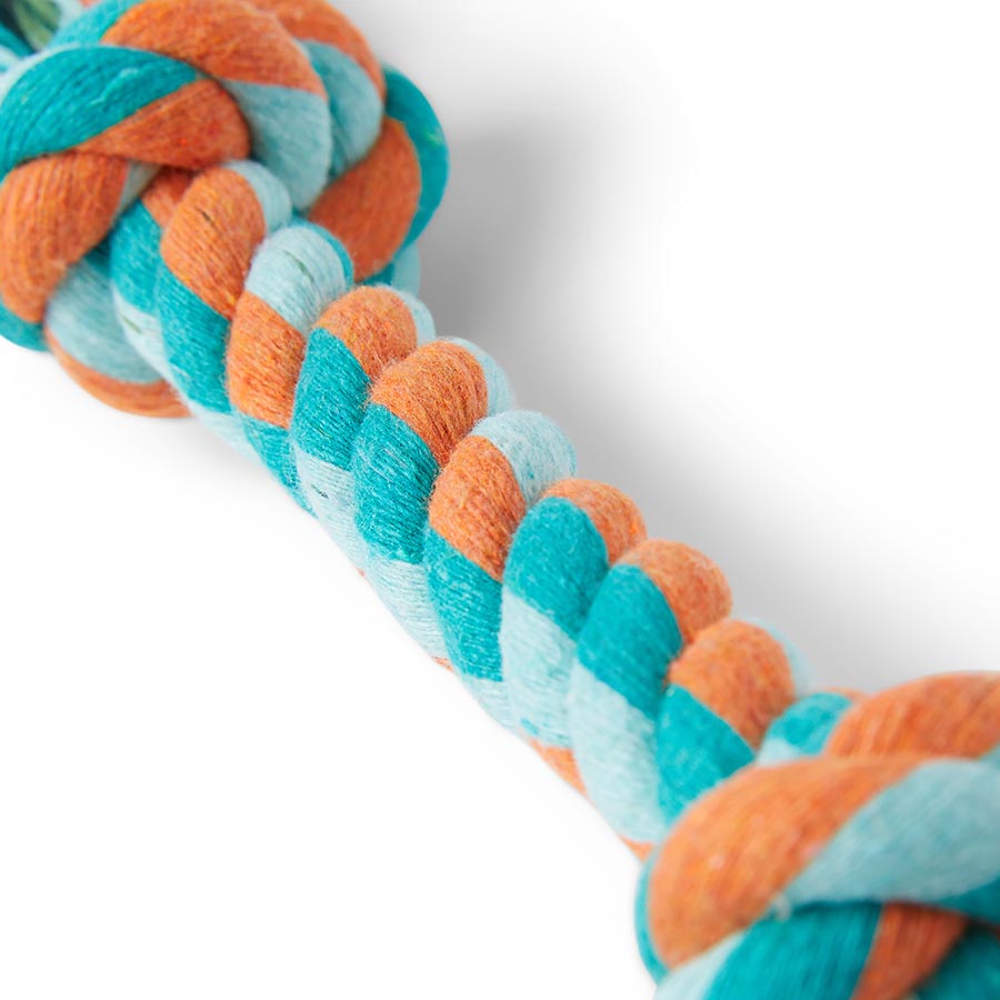 Most dogs can't resist a game or two, so get out and play together with our fetch & carry range. The Knotted Rope Dog Toy is perfect for your pet's playtime, offering endless fun and engagement! Made from durable, multi-coloured rope, it provides a unique texture that dogs love to chew and tug on. Ideal for energetic fetch games and tug-of-war, it encourages bonding and physical activity. The rope dog toy can be soaked in water and frozen, offering dogs a refreshing chew toy to help cool down or soothe their teeth on hot days. Ensure hours of excitement and enjoyment for your furry friend with the Knotted Rope Dog Toy!