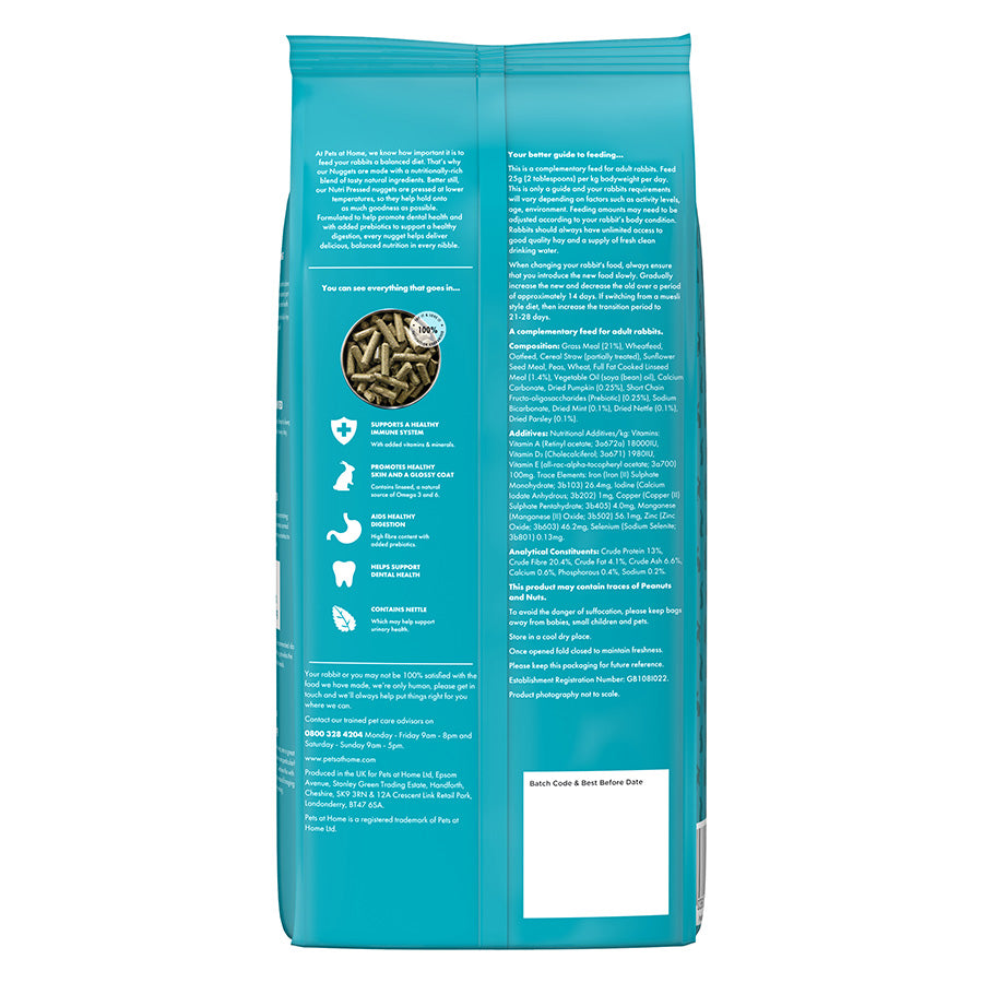 It's important to feed your rabbits a balanced diet. That's why our Pets at Home Nutri Pressed Adult Rabbit Nuggets are made with a nutritionally-rich blend of tasty natural ingredients.