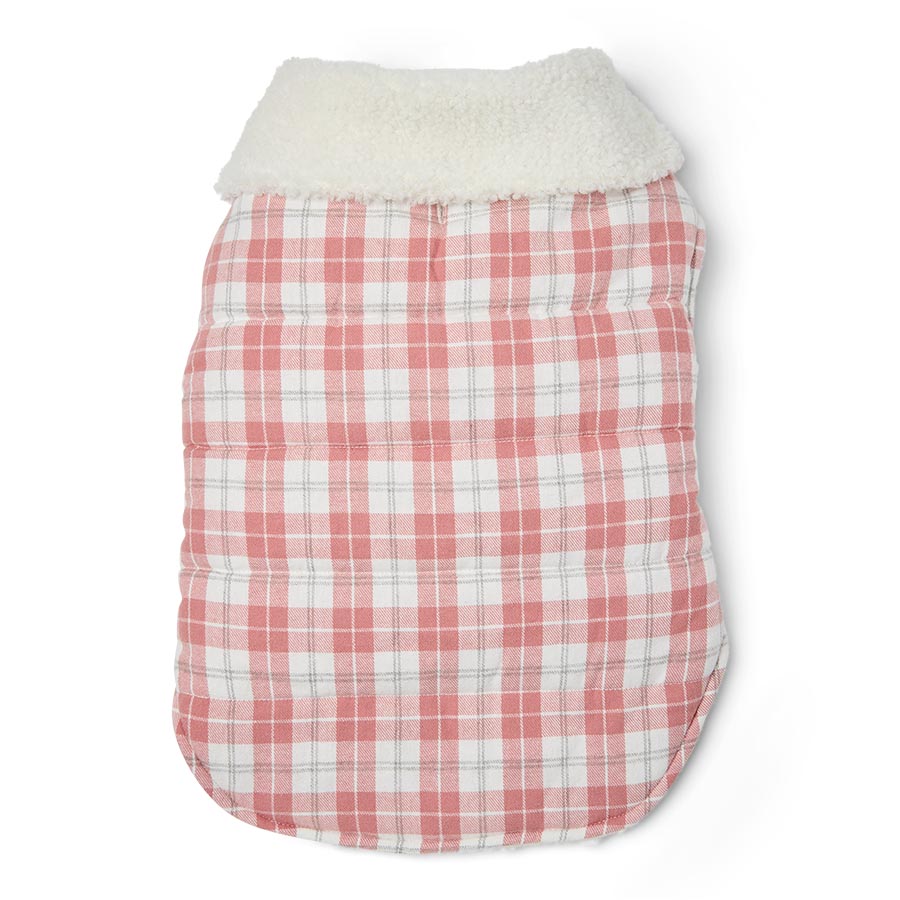 Pets at Home Quilted Plaid Dog Jacket Pink
