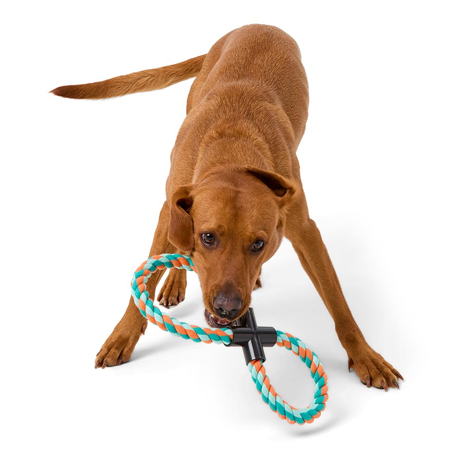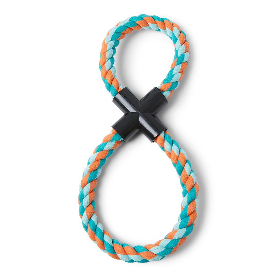 Most dogs love a fun challenge with their best friend, so our shake & wrestle range provides a great way to play and bond. The Rope Figure 8 Dog Toy is an exciting addition to your pet's playtime collection, designed to keep them engaged and entertained! Crafted from durable, multi-coloured rope, this unique toy provides a different texture that's perfect for chewing, tugging, and fetching. Its innovative figure 8 shape makes it ideal for thrilling games of tug-of-war, as well as interactive fetch sessions. Plus, you can wet and freeze the toy to soothe teething puppies, ensuring comfort and fun for dogs of all ages. With the Rope Figure 8 Dog Toy, you'll create countless memorable moments while bonding with your furry friend!