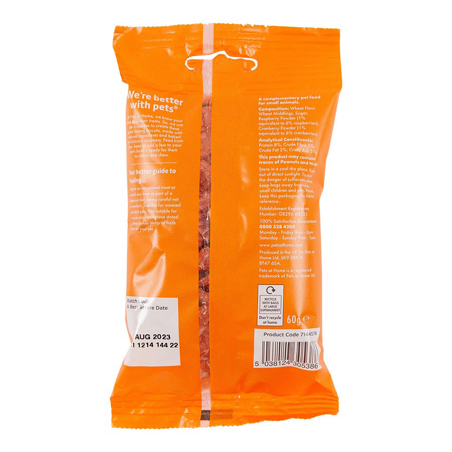Pets at Home Small Animal Biscuit Bites Treats with Raspberry & Cranberry 60g