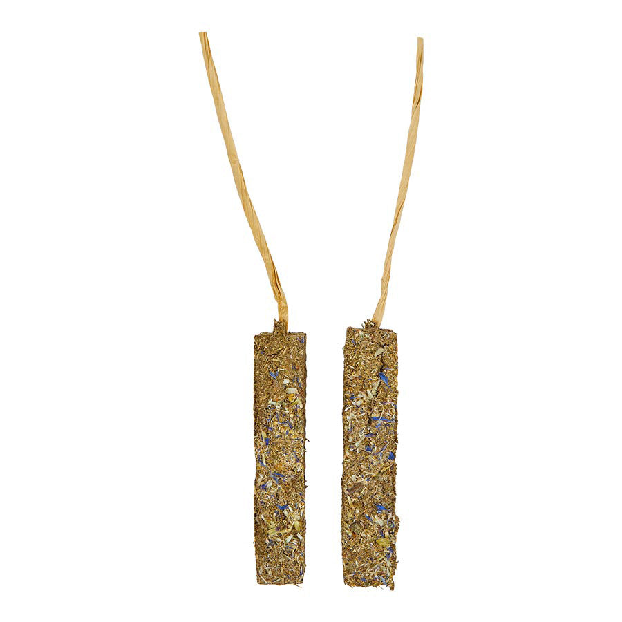 Small animals thrive when presented with new and interesting things in their environment. The Pets at Home Small Animal Treats Daisy & Cornflower Sticks are a fun way to treat your animal. Made from natural hay, flowers, fruit, herbs and veggies. Great for enrichment, simply place or hide a full or partial stick in your animal's play space and let them investigate and nibble to their heart's content. Most small animals need food and treats that will help keep their ever-growing teeth in check, and these sticks are a great support to their dental health, keeping things trim and strong.