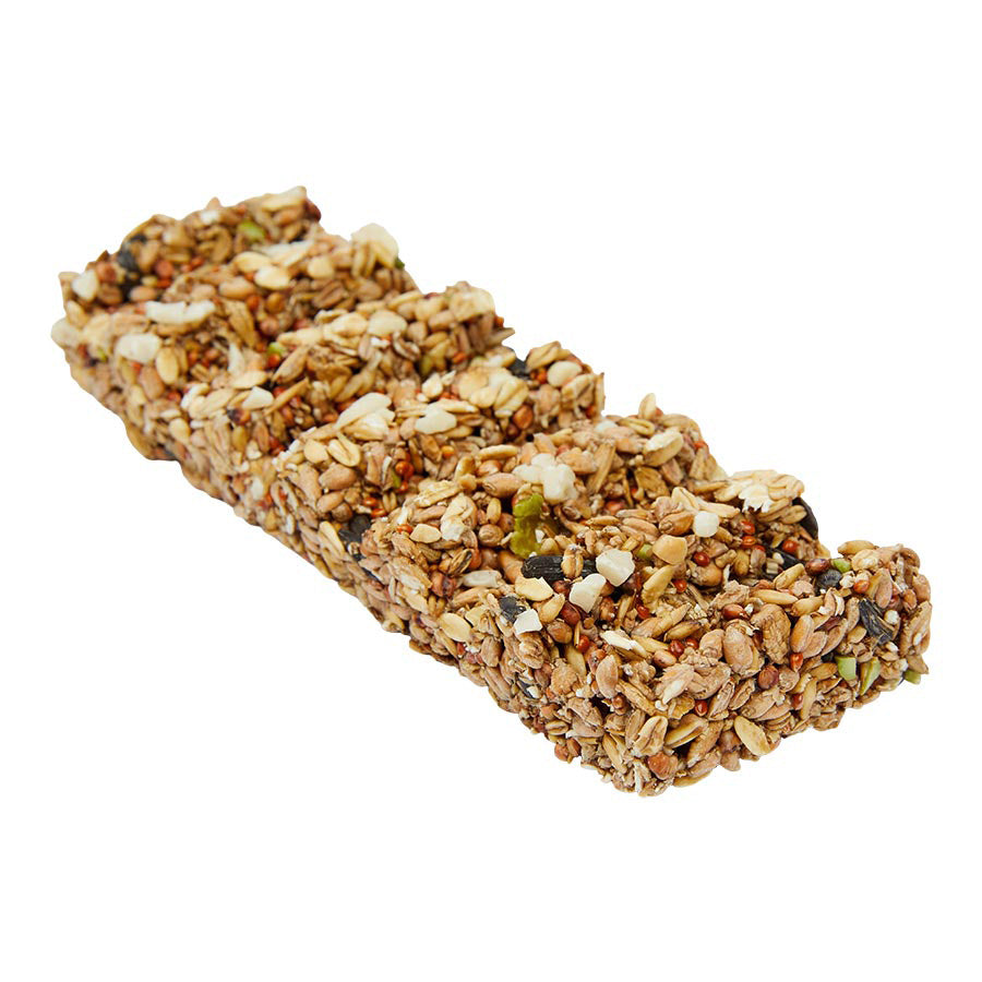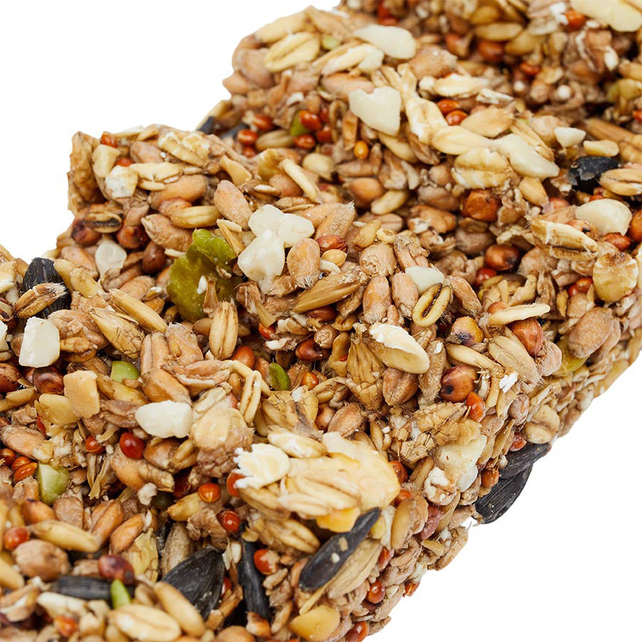 Naked Oats (18%), Red Dari (16%), Micronized Wheat (16%), Micronized Barley (16%), Red Millet (8.5%), Peas (7%), Black Sunflower Seeds (6.5%), Rolled Naked Oats (6%), Rolled Oats (3%), Peanuts (2%), Vegan Binder (1%)