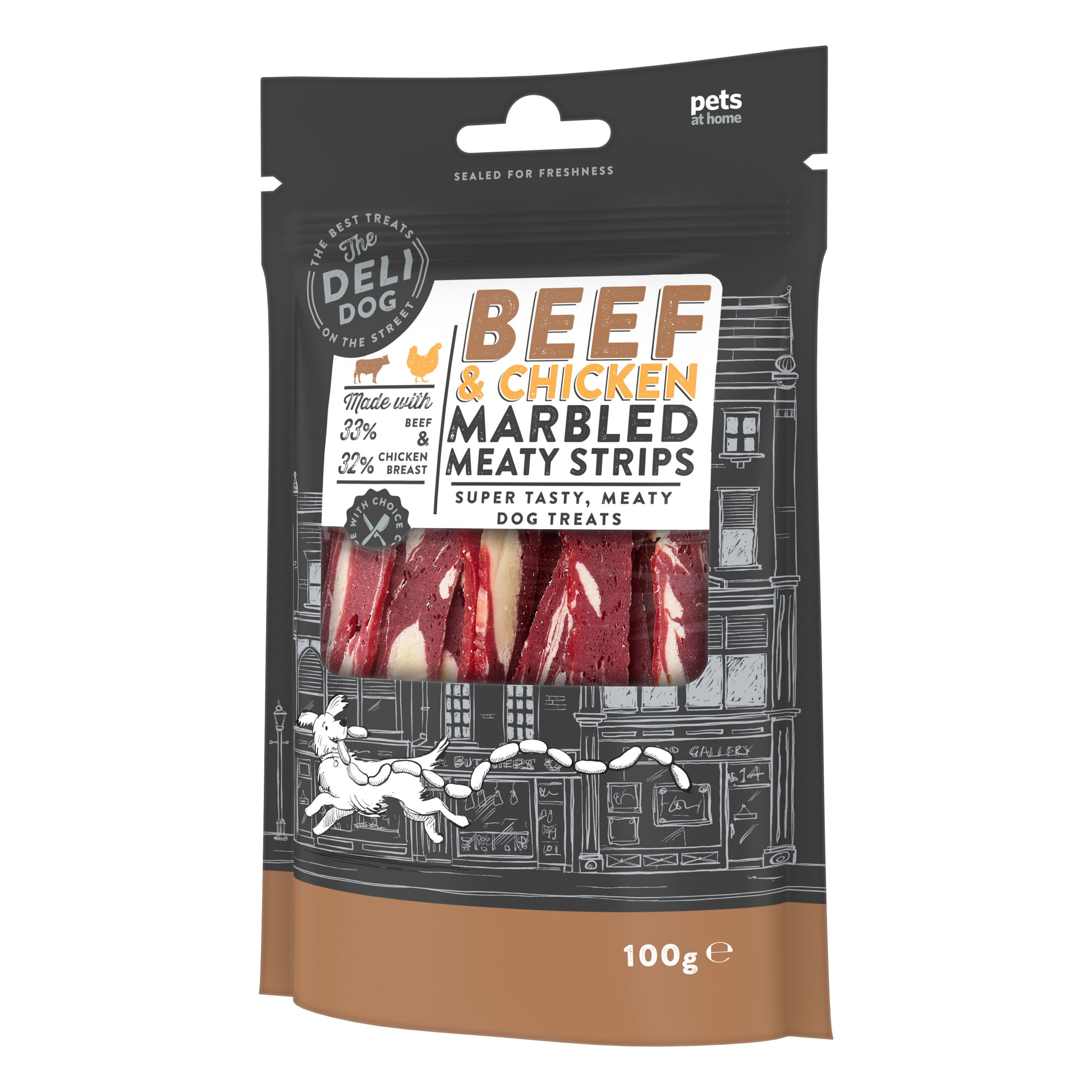 Pets At Home The Deli Dog Beef & Chicken Marbled Meaty Strips Dog Treats 100g