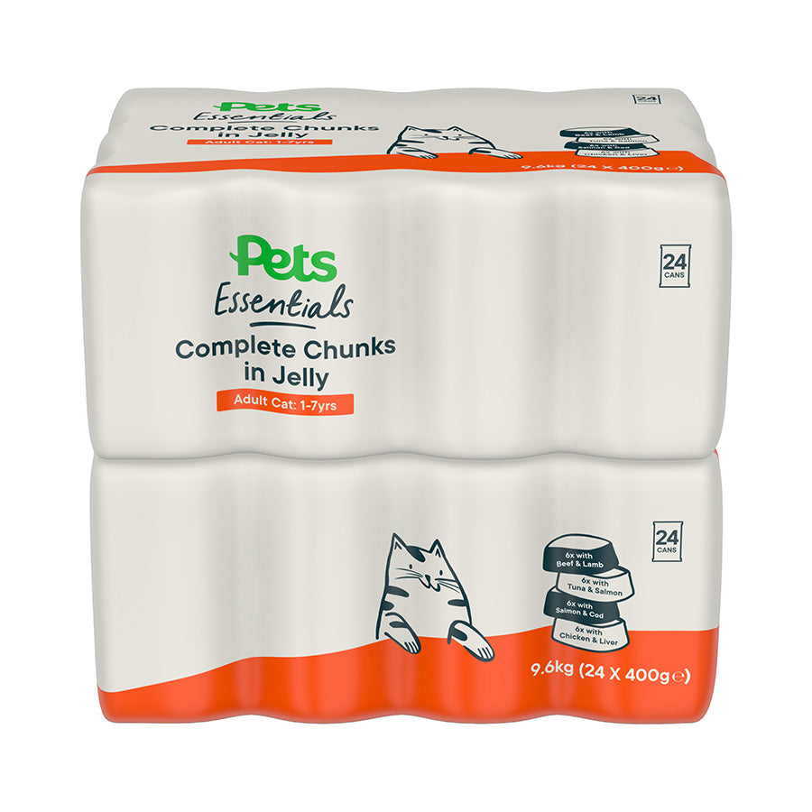 The Pets Essentials Complete Chunks in Jelly pouch is everything your cat needs, with no added artificial colours, flavours or preservatives. This Variety Selection supports healthy heart and eyes as well as a healthy immune system.