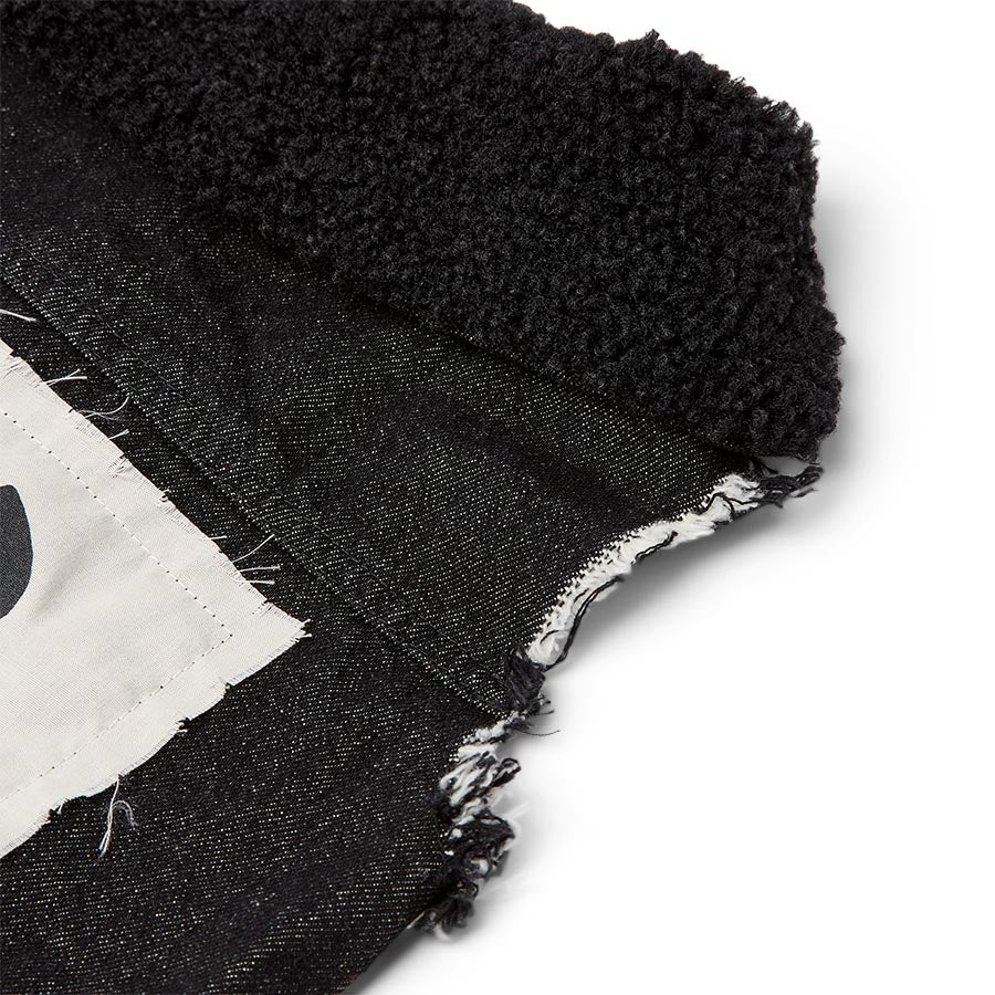 - Black wash denim with woven patch & digitally printed graphic - Original art by Bad Monday