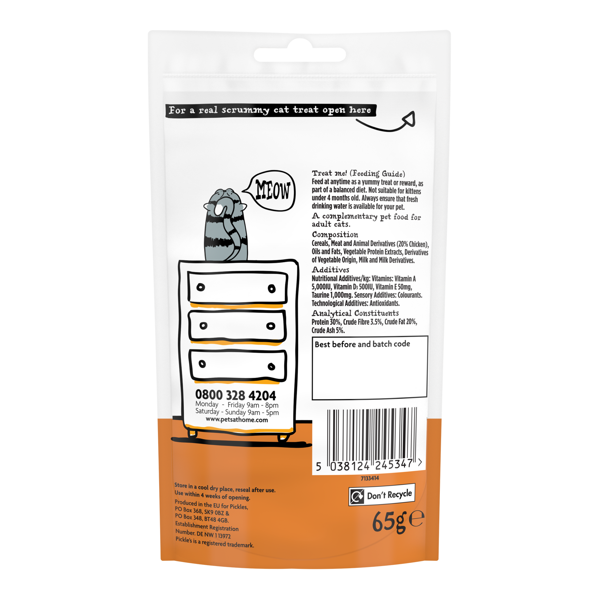 Why not check out our full Pickle's Cat Treats range to find the perfect treats for your cat?Cats give us so much, which is why they deserve the very best love and care. Pickle's pour their expertise and passion into creating great, nutritionally balanced food and treats that you can really trust to treat your furry friend - Whether that's for training, good behaviour, or just because. Pickle's are better with pets, they are at the heart of everything they do.