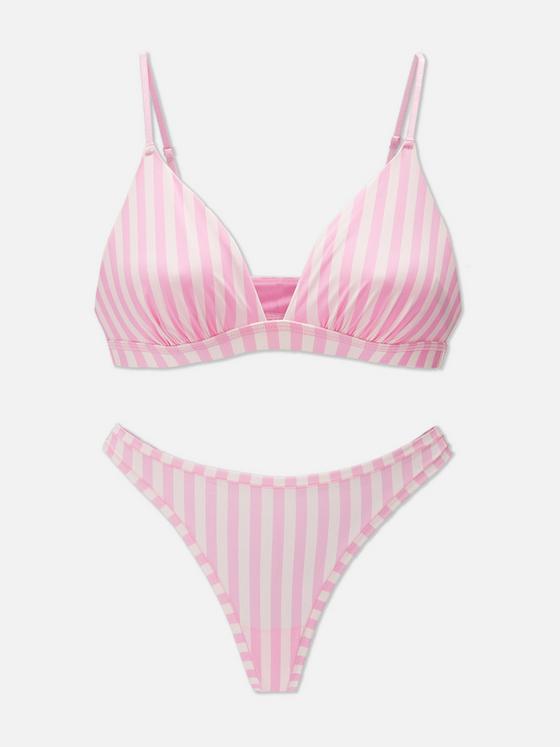 Pink stripe non-padded, wire-free bra and matching thong set. Cute!