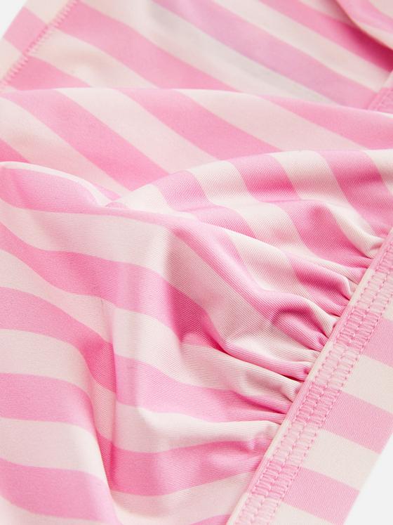 Add a pop of fun to your lingerie drawer with our pink stripe underwear set. The bra is non-padded and wire-free for all-day comfort, with adjustable straps for a perfect fit. It comes with a matching thong. Perfect for everyday wear with a touch of playful style.