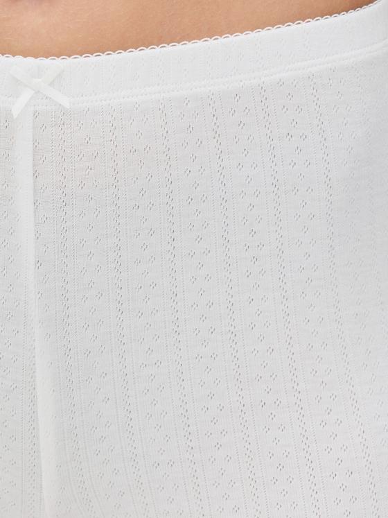 Sweet dreams are made of these pyjama shorts with pretty pointelle detailing. Perfect for those warm summer nights or cosy mornings lounging at home, these shorts feature a comfortable elasticated waistband that won't dig in while you sleep. Meanwhile, the delicate pointelle pattern adds a charming touch to your nightwear collection. Pair with the matching PJ top for a coordinated bedtime look, or mix it up with your favourite sleep T-shirt. They're ideal for packing in your weekend bag or wearing while getting ready for a big night out with friends!